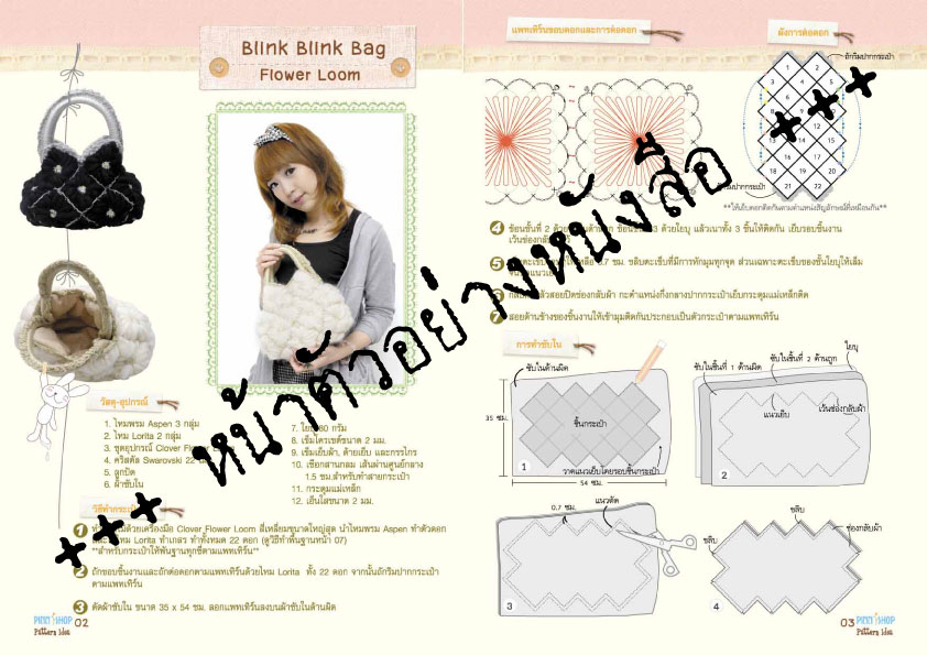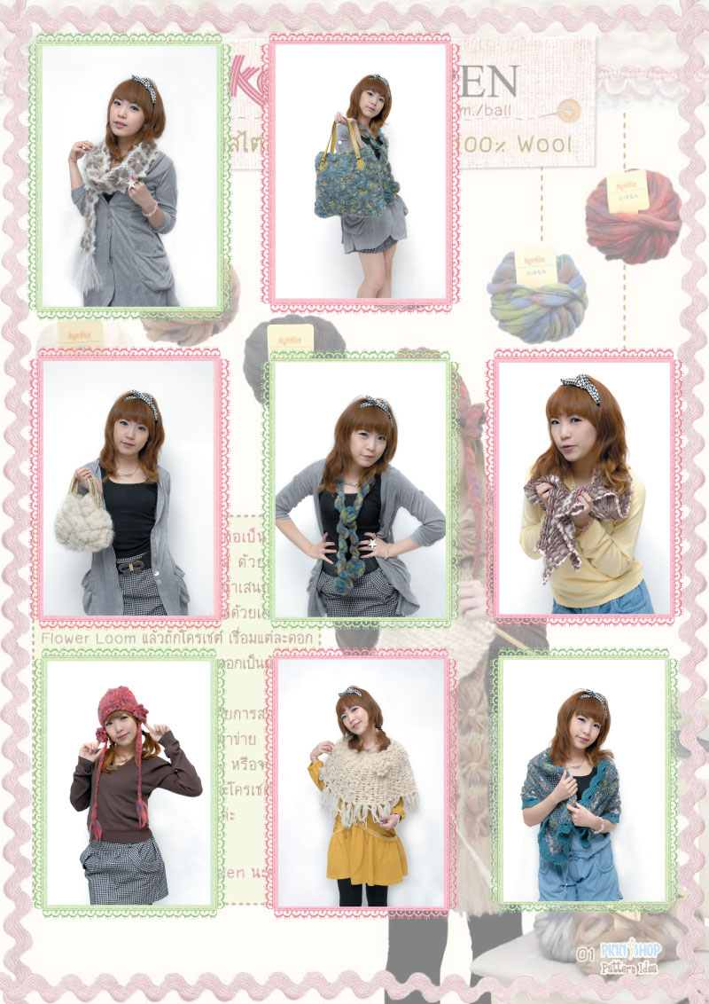 +++ไหมพรม ASPN ถักทอเป็นชิ้นงานที่สวยงามได้หลากหลายสไตล์ ด้วยเทคนิคต่าง ๆ กัน ชิ้นงานแรกในเล่มนี้ นำเสนอการพัน ไหมพรมเป็นดอกไม้ทรงสี่เหลี่ยมด้วยเครื่องมือ Flower Loom แล้วถักโครเชต์ เชื่อมแต่ละดอกเป็นกระเป๋าถือที่ดูหรู หรือจะต่อดอกเป็นผ้าพันคอก็ดูเก๋ หวานแปลกตาค่ะ